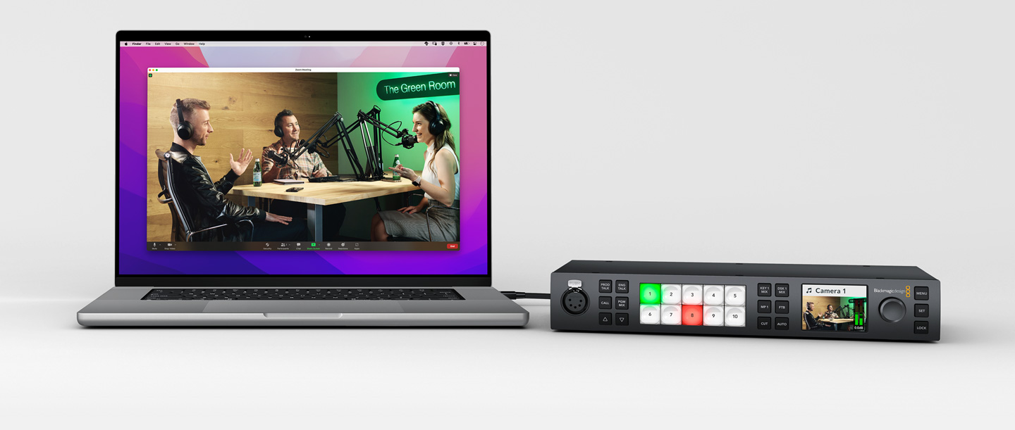 Los mezcladores ATEM Constellation cuentan con un puerto USB-C que permite detectarlos como una cámara web al conectarlos a un equipo informático, lo cual brinda la posibilidad de emitir en directo mediante cualquier programa destinado a tal fin. Esto brinda la posibilidad de transmitir imágenes en resolución HD 1080, a través de plataformas como Zoom o Microsoft Teams, a fin de realizar presentaciones con un estilo profesional empleando varias cámaras. El puerto USB-C de estos mezcladores también es compatible con Open Broadcaster, XSplit Broadcaster y otros programas similares.
