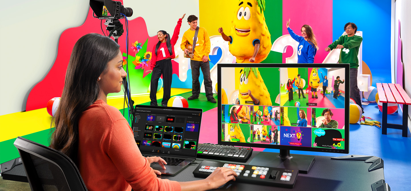 ATEM SDI is fast to set up and easy to use. It includes 4 standards converted SDI inputs, USB webcam, 2 SDI outputs, Fairlight audio mixer with EQ and dynamics, DVE for picture in picture, transition effects, green screen chroma key, 20 stills media pool for titles and free ATEM Software Control.