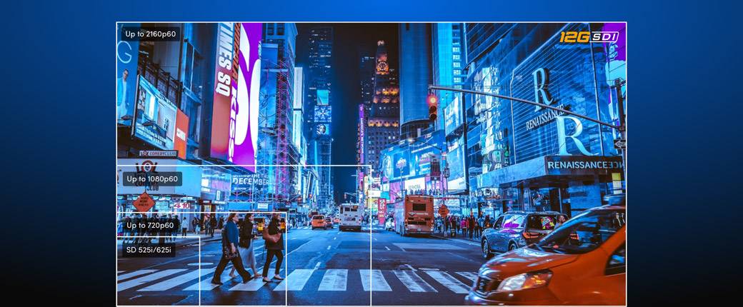 Ідеальний стійковий HD-конвертер для перетворення трьох каналів під стандарт SMPTE ST 2110. Завдяки наявності трьох входів і виходів 3G-SDI до нього можна підключати стільки ж пристроїв з інтерфейсом 3G-SDI. Усі три канали передаватимуться через порт 10G Ethernet (RJ-45), отже достатньо використовувати недорогий стандартний Ethernet-кабель Cat 6. Ця модель також має синхровихід, на якому сигнал узгоджується за PTP-протоколом, і РК-дисплей для моніторингу.