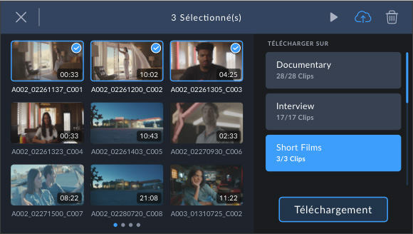 Pour le téléchargement sur le Blackmagic Cloud ou le contrôle caméra