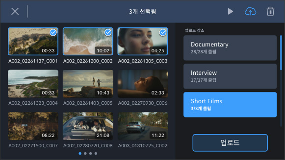 오프라인인 경우 나중에 인터넷에 연결되면 미디어를 탐색하여 Blackmagic Cloud에 업로드할 클립을 수동으로 선택할 수 있습니다.