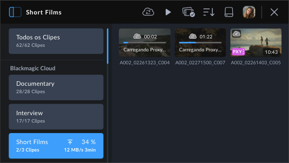 Sincronização ao Vivo com a Blackmagic Cloud e Editores