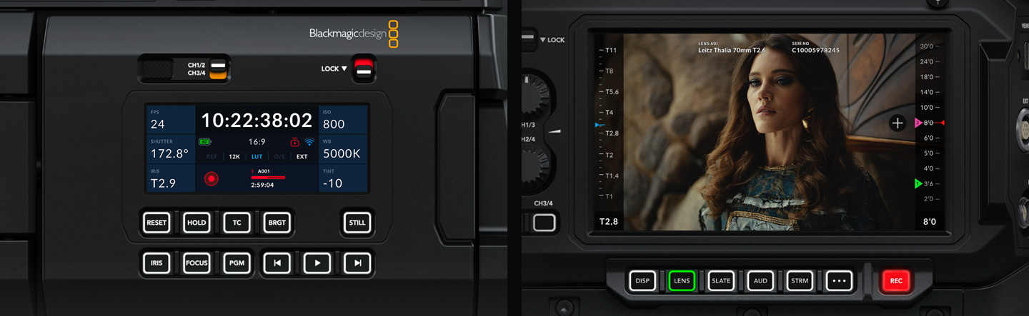 URSA Cine, her türlü üst düzey yapımın gereksinimlerini karşılamak üzere tasarlanmıştır. Bu kamera gövdesi, sette hızlı hareket etmenize yardımcı olmak üzere sağlam bir magnezyum alaşımlı kasa ve hafif karbon fiber polikarbon kompozit kaplama ile üretilmiştir. Yumuşak dokunuşlu arkadan aydınlatmalı butonlar, her tür koşulda kontrollerin kolayca görülmesini sağlar. Çekimleri gözden geçirmek ve kamera ayarlarına erişmek için 5 inçlik katlanabilir dokunmatik ekranın yanı sıra kameranın diğer tarafında 5 inç LCD ve tam kamera kontrollerine sahip özel bir asistan paneli bulunur! Lemo ve Fischer standart konektörleri, kamerayı uzaktan kontrol etmenizi sağlarken, lens motorları ve diğer aksesuarlar için de güç sağlar. Ayrıca 12G-SDI çıkışı, 10G Ethernet, USB-C, XLR ses ve benzer özellikler elde edersiniz!